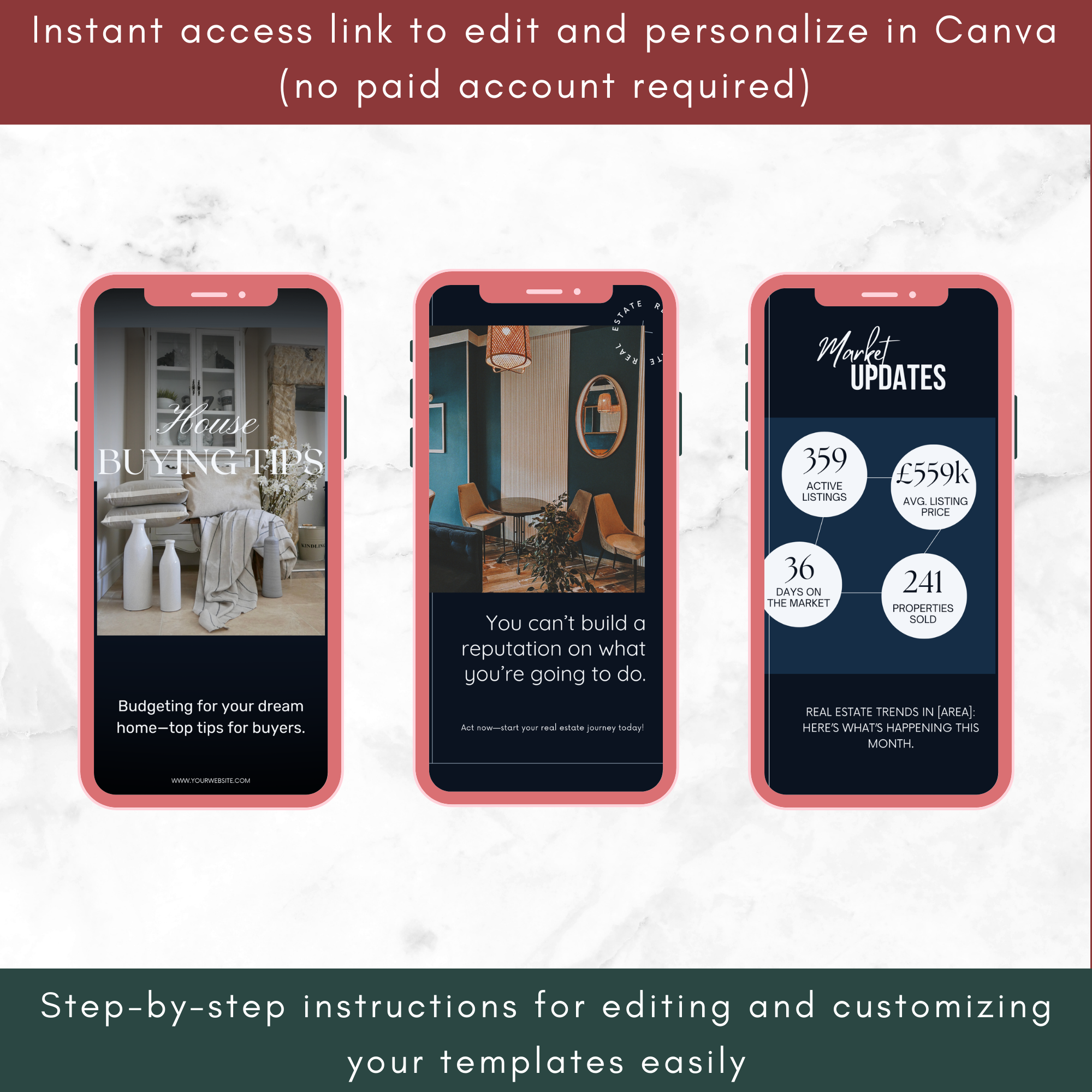 Take your real estate marketing to the next level with these 100 Story Templates designed specifically for agents, brokers, and realtors. Whether you’re announcing new listings, sharing market updates, or giving home buying tips, these templates make it easy to create a cohesive, professional brand that grabs attention and connects with your audience.